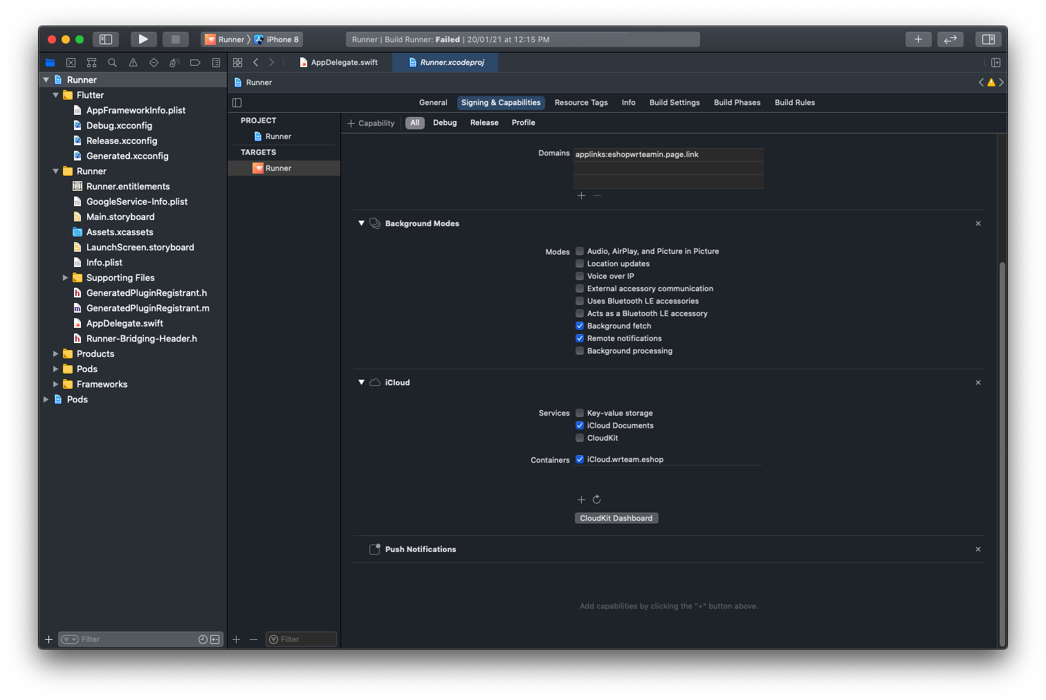 1. Open your Project's Runner.xcworkspace file in Xcode, and Add your Team [Your Apple Developer ID] and also Insert GoogleService-Info.plist file [Downloaded From Firebase Project] inside folder named Runner.