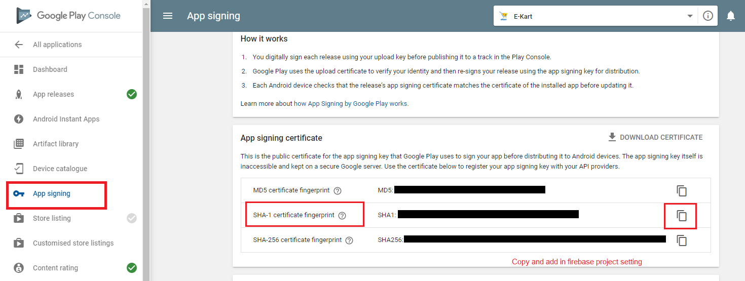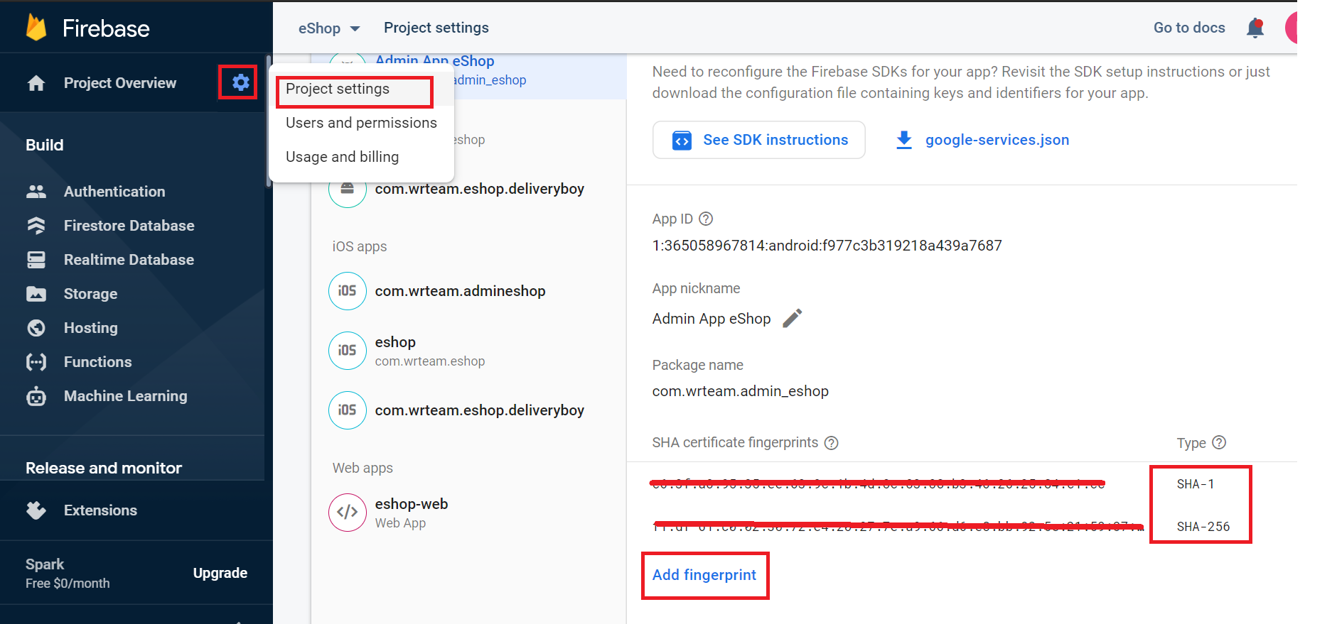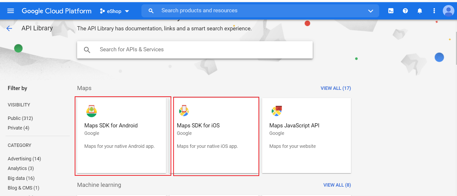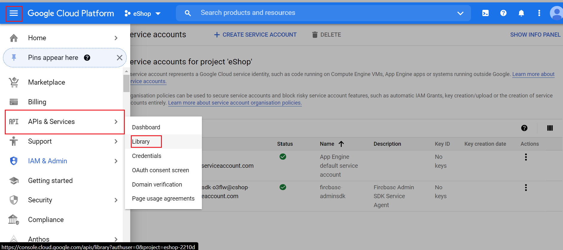 7. Go to Credential Tab. you will find your Androiod and iOS API keys. eShop