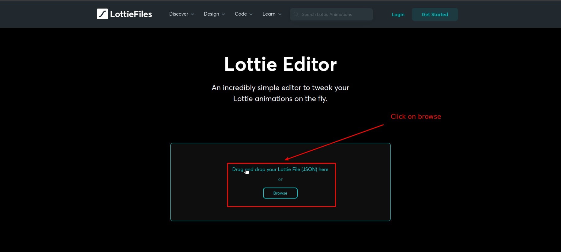1. Open Browser and Goto website https://lottiefiles.com and login or create account and login.