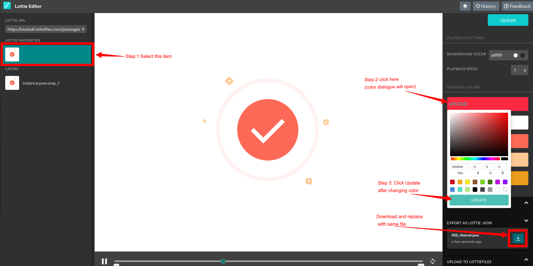 2. Search animation only in lottiefiles modify acording your requirement and download that json file rename that file as per exist file in assest/animation folder.
