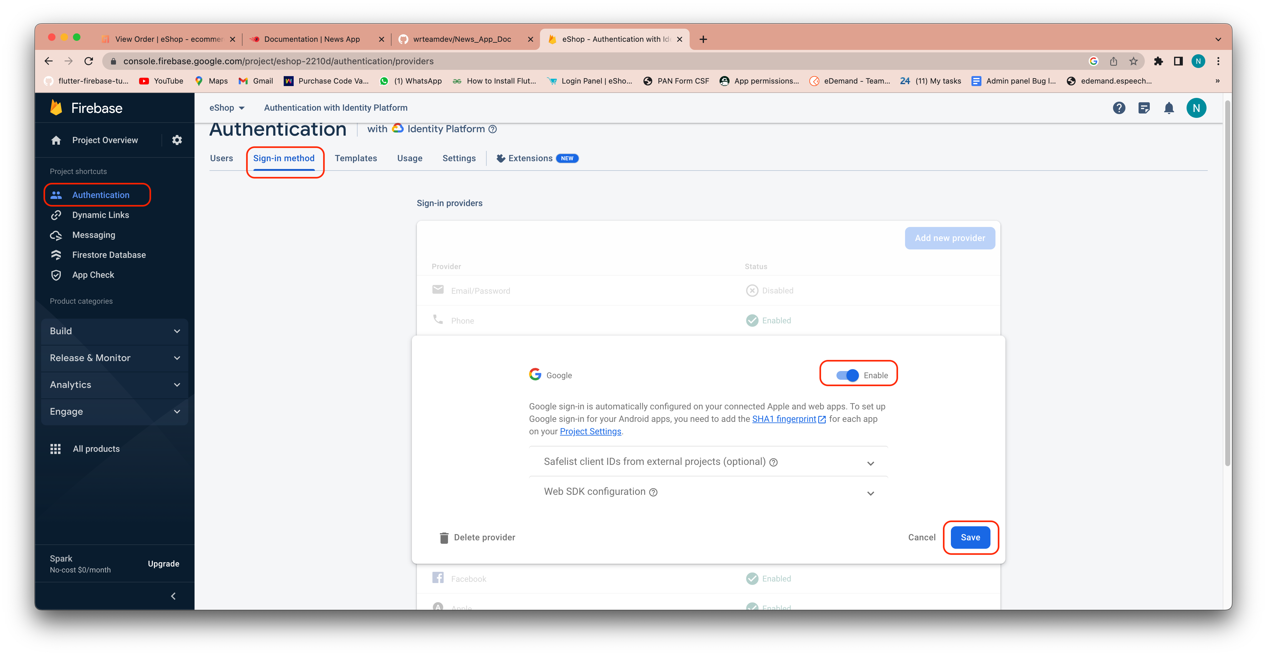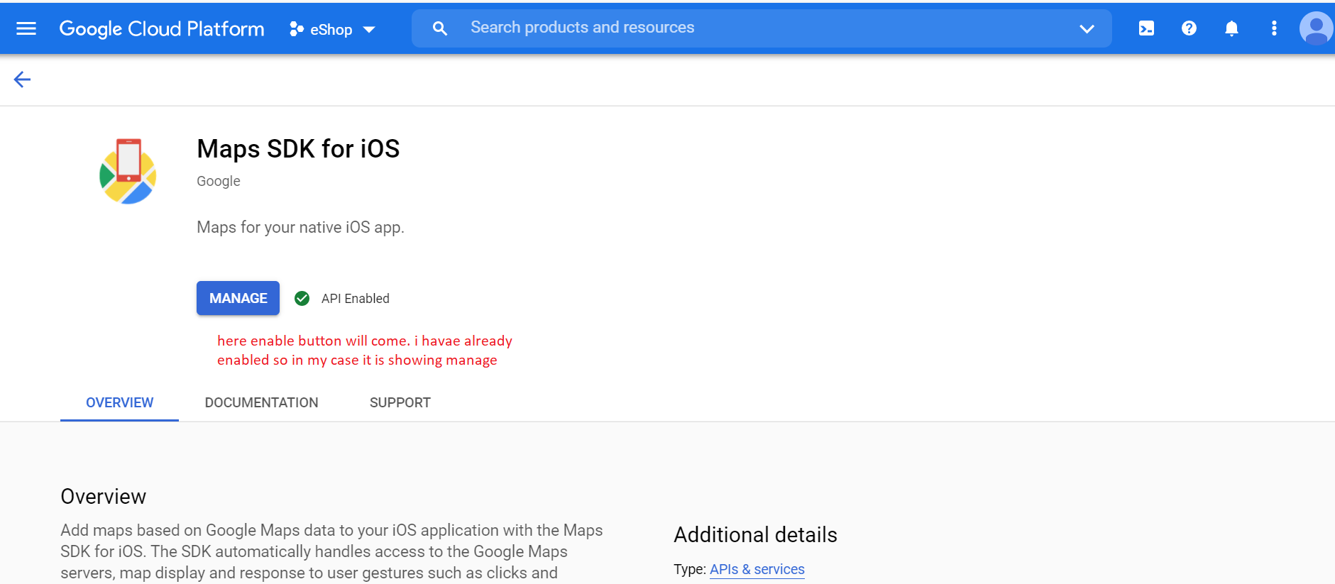 7. Go to Credential Tab. you will find your Androiod and iOS API keys. eShop
