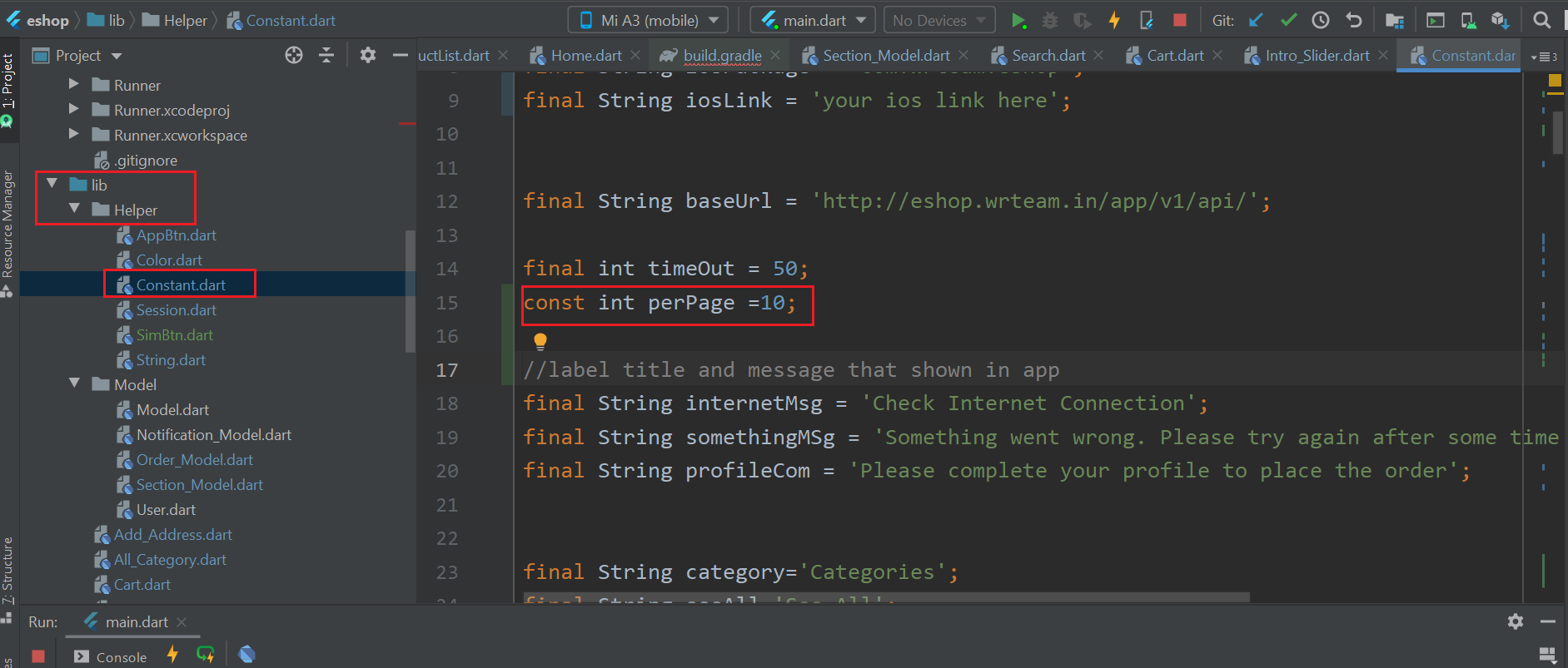 1. you can chnage at a time when request send to server how many item will fetch.go to lib > helper > Constant.dart