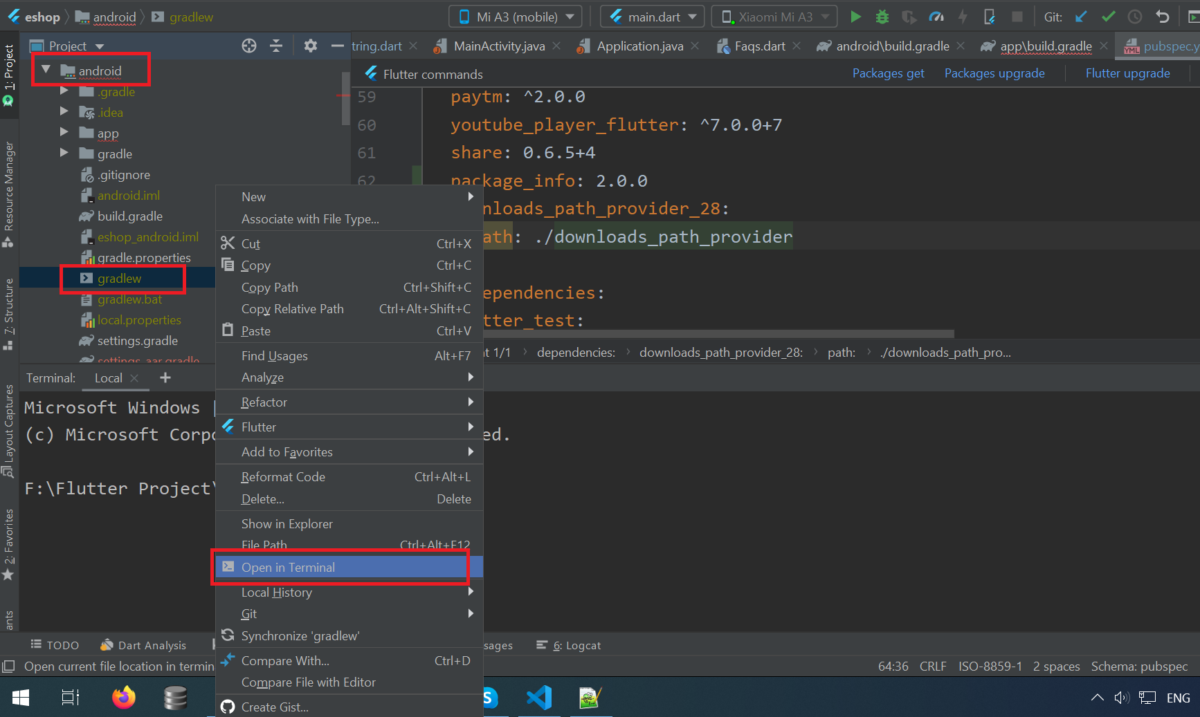 9. Do not forget to execute flutter packages get, flutter build or flutter run after this step
